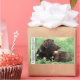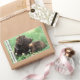 This rectangular sticker features a photograph of the chocolate Labrador Retriever in cool green grass and purple wildflowers. Fill in the template fields with your words or quote, remove the text and text bar or click Customize it! to select a font style, size and color you like.