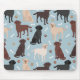 Cute Labrador Retriever dogs with black, chocolate, red and yellow coat colors. Lab dogs with paw prints and dog bones pattern.