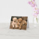 This cute note card features an image of two yellow Labrador Retriever puppies resting on a fireplace hearth.