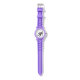 I only have one complaint. I ordered the watch with clear case and strap, and what was sent was white case and strap. I'm going to keep it because 1) it looks very nice in white, and 2) it would take too long to get a replacement made and sent in time for my occasion. Aside from the mix up with the color, the watch does look very good in white. The purple dial is actually sparkly which did not show in the online images. That was a nice surprise. If you like Swatch watches this is very similar to those. It's 33.6mm in diameter, 10.5mm thick, and 40.6mm lug to lug. Stainless steel case back says 3ATM/30m WR, so no swimming or showering or submerging this one. If you like Woodstock, this is a great choice.