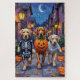 Adorable Labradors dressed in playful Halloween costumes carry pumpkin buckets while trick-or-treating under the moonlit sky. This festive design highlights the breed’s friendly face, sturdy build, and loyal personality, perfectly capturing the spooky yet fun atmosphere of Halloween night. A joyful celebration for dog lovers and Halloween fans alike.
