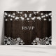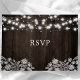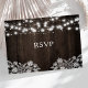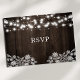 Lace And Wood String Lights Rustic Wedding RSVP Postcard. Personalize this custom design with all of your RSVP details.