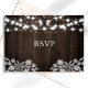 Lace And Wood String Lights Rustic Wedding RSVP Postcard