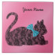 This charming ceramic tile features a graceful black lace-style cat silhouette wearing a faux appliqué teal bow, set against a soft pink gradient background. Personalize it with your name! A perfect accent for a girl's bathroom, vanity area, or even as a decorative keepsake for cat lovers. Feminine, playful, and totally unique.