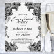 Plain white envelopes are included with paper invitations and will come to fit the invitation size you select. If you don’t need the envelopes, you may choose to not receive them by selecting the dropdown below "Envelopes" and choosing "None." If you’d like to have a design on your envelopes, you can browse all of these available envelopes to find the design that complements your Black And White Lace Engagement Party Invitation.