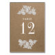 Elegant White Lace Flowers design with Kraft Paper effect background Personalized Wedding Table Number Cards. Matching Wedding Invitations, Bridal Shower Invitations, Save the Date Cards, Bridesmaid To Be Request Cards, Thank You Cards, Wedding Favors and Gifts available in the Vintage Design Category of our Store.