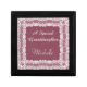 A pretty white lace frame with flower corners contrasts with rose violet pink on this elegant personalized gift box for a granddaughter. Your customized text in white is in the center. *Please note - the image is printed, and contains no actual lace.* Created using artwork purchased from Digital Design Boutique.