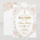 Lace Ivory Bow Pearl Bautizo Invitation, Floral Catholic Bautizo Invite, Editable Spanish Christening Invite