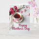 Designed with a serene still-life arrangement, the card centers on a dainty teacup and matching saucer decorated with pink floral patterns and thin gold edging along the rim and handle. Inside the cup, a deep amber drink sits quietly, adding a cozy touch that feels like a shared pause between close friends ❤️. Behind the cup, a small cluster of fuchsia-pink roses leans in as if offering a gentle greeting, their soft petals contrasting with the smooth porcelain. A layer of white lace-like fabric drapes beneath the flowers, bringing a tender, homey texture that suggests care and closeness. On the right side of the white tabletop, several tiny pink bows are scattered like little keepsakes, some with faint white floral details for a sweet, thoughtful look 🌼. The message appears near the lower area in elegant cursive-style lettering, set in a soft coordinating pink that echoes the florals. Light falls softly across the scene, leaving delicate shadows around the cup, the lace folds, and the rose petals.