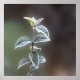 branch with long green leaves caught by frost