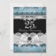 Lace & Pearl Bow Silver Blue 25th Anniversary Invitation