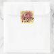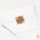 These charming stickers have an old-fashioned, vintage feel to them. Magenta pink mums and white pearls with purple stones are set on lace against a pale yellow background. The lighter vignette at the corners adds a dramatic feel.