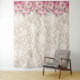 A lace-style backdrop adorned with beautiful pink flowers at the top would be a breathtaking addition to any event, especially a wedding.