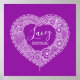 Art name white lace heart poster perfect for a girls bedroom or playroom. Personalize with your own name and name meaning for a truly personalized touch to your child's bedroom or nursery, this example is for the name Lacey Pretty braid, chic, stylish & confident. Cute poster print ideal for a new baby or christening or girls birthday gift background color can be changed if required currently purple. © Unique inked art design by Sarah Trett. www.sarahtrett.com for www.mylittleeden.com