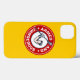 Lacrosse iPhone 6 case - Armed and Dangerous. Circular emblem design of muscular arm with glove holding lacrosse stick. Lacrosse iPhone 6 case.