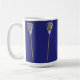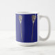 Creative lacrosse sports mug featuring lax stick and ball design pattern on field of royal blue.