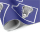 Lacrosse gift wrap or blue team party decoration featuring lax sticks pattern on blue background.