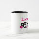 Lacrosse Chick. Vrouwelijke beker met de kleuren: roze paars en zwart. Voor een vrouw die van Lacrosse houd.