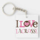 Cute pink heart I Love Lacrosse design on a keychain for the player or coach.