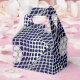 Creative lacrosse team party, sports event or senior night favor box featuring lax mesh and ball design on navy-blue background.