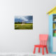 A vivid lacrosse goal and net on a lush green field under dramatic storm clouds, this sports photograph makes a bold statement in any lacrosse player's bedroom, teen hangout space, or game room. The wide landscape format is perfect for filling a wall with game day energy. The frame shown in the cover photo is for styling only and is not included.