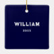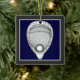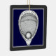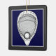 Unique lacrosse goalie award or gift ornament featuring lax goalie stick on navy blue background. Edit text to customize for you favorite lacrosse player.