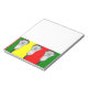 Lacrosse notepad featuring lax sticks on colorful red, green and yellow background.