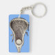 Cool lacrosse stick on a slick keychain. Add text to personalize.
