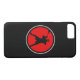 Locked, cocked and ready to rock. Silhouette of lacrosse player in the midst of firing a shot on goal. Circular emblem design in black, gray and red. Lacrosse shooter iPhone 6 case. LaxShop - your online source for cool and eclectic and gifts celebrating the fast growing and thrilling sport of Lacrosse. Lacrosse player iPhone 6 case - red version.