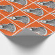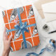 Creative lacrosse gift wrap or party decoration featuring lax stick on an orange background.