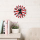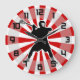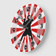Lacrosse wall clock. Lacrosse player in shooting pose on red and white ray background. Wall clock for lacrosse players and fans.