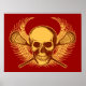 Lacrosse skull. Take off on the iconic skull and cross bones design. Skull and crossed lacrosse sticks with winged background element. Design style: Red. Lacrosse wall poster.