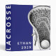 Creative lacrosse scrapbook photo album or sports binder featuring lax stick design on blue background. Edit text to personalize.