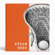 Creative lacrosse scrapbook photo album or sports binder featuring lax stick pattern on orange background. Edit text to change name of team player and the year.