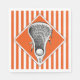 Lacrosse sports design for lax team party, sporting event, or school senior night, featuring a lax stick on an orange background.
