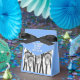 Creative lacrosse themed party favor box featuring awesome lax sticks design and team quote on light-blue backgrouind.