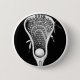 Cool lacrosse keepsake button pin gift or Senior Night party favors featuring lax stick on black background. Edit text to add year.
