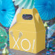 Creative lacrosse party or team sports event favor boxes featuring lax sticks design on gold background.