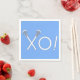 Creative lacrosse party or event napkins for team player, coach or sports fans who love game day, senior night or birthday party featuring lax sticks xoxo love on light-blue background.