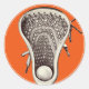 Lacrosse gift stickers, party favor labels or envelope seals for orange team player, coach or sports fan featuring lax stick and ball design.