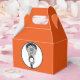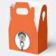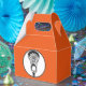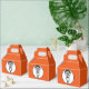 Cool lacrosse party or team event favor box featuring lax stick design on an orange background for birthday party, team event and sports gifts.