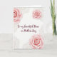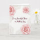 This card features a luminous white background with soft floral accents and delicate lace-like patterns that feel gently romantic. Three stylized roses in a pale pink sit prominently around the center, their petals shaded with subtle gradients that give them a lightly rounded, almost touchable look. The blooms seem to lean inward toward the message, like a quiet embrace between close family members ❤️. Behind them and in a few corners, airy beige mandala-style lace shapes spread out in fine detail, adding texture without crowding the space. Centered on the front, the main line of text reads “To my beautiful Niece on Mother’s Day,” placed as the focal point. The lettering is a flowing cursive style in deep burgundy, standing out clearly against the soft pink and cream tones 🌼. The roses frame the words from the sides while the lace patterns peek out from behind, especially near the upper and lower corners. Light beige lace medallions fan outward behind the pink roses, with the burgundy cursive text centered on the white field.