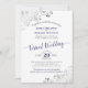 Lacy Silver Navy Blue & White Virtual Wedding Invitation