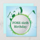 Birthday invitation that can be used for a 40th. Birthday, as the design has fore-tieth text on a golf ball. the outside of the ball has a Lady swinging a club, a golf cart flags clubs and grass.The card can be customized to the persons name and the other text can also be changed to suite.