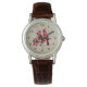 Womens' red cardinal watch, gray background with gold trim. Many different watch colors and styles to choose from.