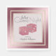 These glamorous Ladies' Game Night party napkins features a shiny looking, metallic-like dark pink background with a soft, blush pink square in the center. The blush pink square is bordered with a champagne gold glitter style border and a second, larger frame is placed outside of the first. A large pair of pink glitter dice are placed in the center and a shiny golden accent swirl appears near the bottom.