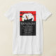 My overall review is that the T-shirt is nice, it fits true to size however the font is significantly smaller than advertised and you can't read it. The printing is unreadable and there is a strain to read it. It does not look like the advertised product. Maybe the shirt color is darker or a larger more visible font should have been used. Photos with and without flash and font is barely legible.
