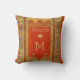 Personalized Ladik style Oriental rug design PRINTED THROW PILLOW .Alma Wad restored the vintage illustration. It features a well-known Turkish carpet style known as "Ladik." Orange and light blue/gray are the primary colors. You can now personalize it with a name and monogram.