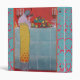 Elegant teal blue wedding planner binder.Vibrant ,classy French Art Deco high fashion illustration with a beautiful woman with fruits in hand in red yellow ,aqua blue ,teal colors .Cool ,modern and artistic design for wedding event coordinators ,planners,beauty,fashion woman outlet boutiques.