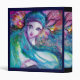 Colorful ,whimsical ,unique, artistic watercolor painting in bright aqua blue ,green,teal,pink,fuchsia,white ,sparkling iridescent colors,golden and silver foil, inspired from Carnival of Venice.2009.